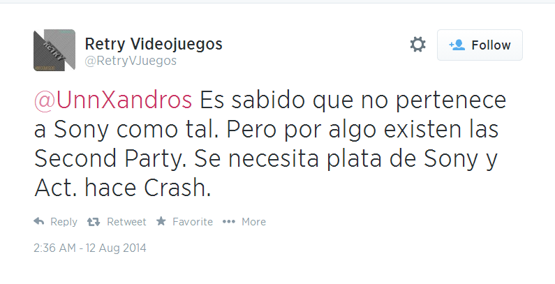Por que explico lo de las «Parties» ya que en el video podcast no se hace mención… Bien en twitter se me hizo notar que sabían que la IP no era de Sony, pero por algo existen las segundas parties. Otro grosero error.